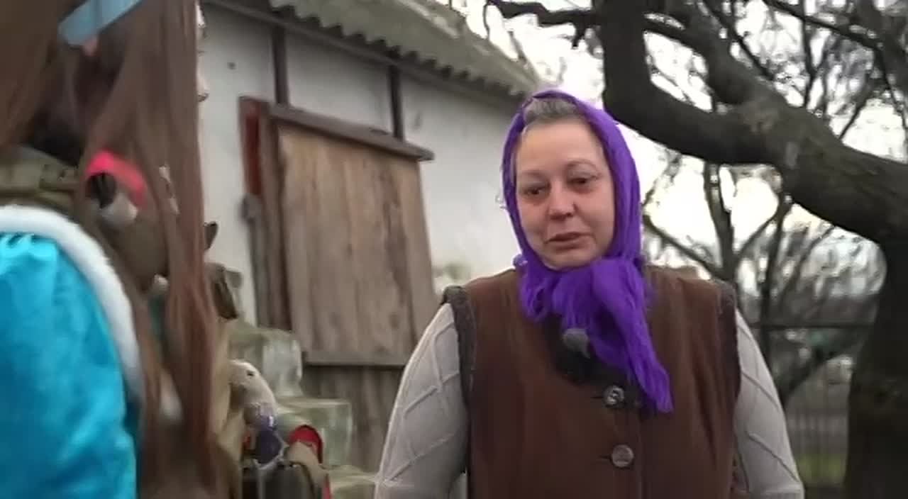 "Двадцать два человека нас тут осталось, двоих вывезли оформлять документы. Я сама выезжала, маму отвозила в Донецк, но вернулась, дом есть дом. Мамин дом разбитый, мы хотим, чтобы помогли отремонтировать, и она тоже хочет домой. Без света плохо, спасибо, помогают военные, с водой, с остальным. Свет надо, работу надо, что же мы, мы же до войны работали... "