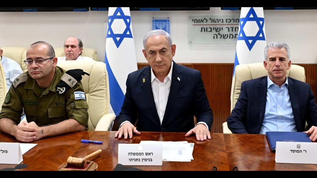 Премьер Израиля Беньямин Нетаньяху и высокопоставленные чиновники из сферы безопасности проводят заседание в подземном бункере.