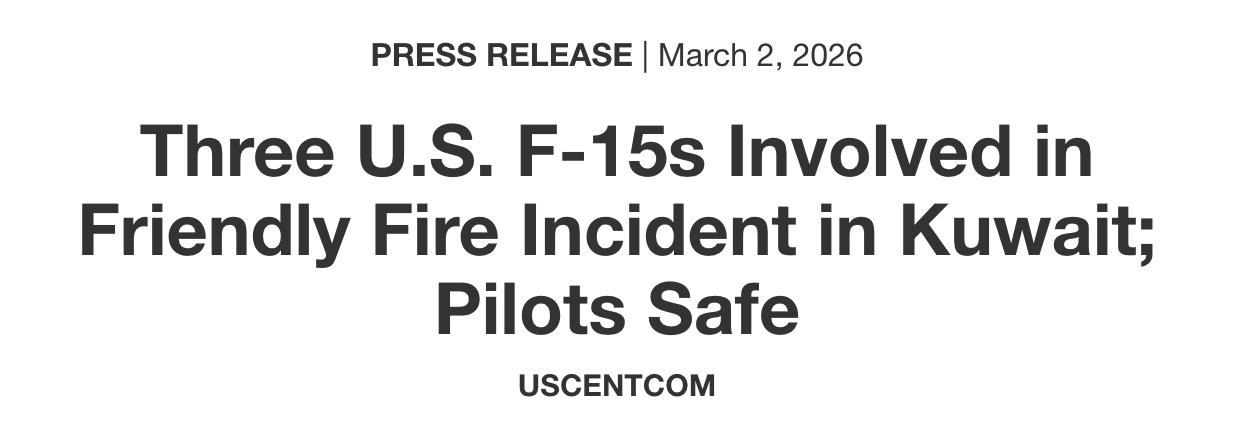 Пентагон поспешил заявить о "дружественном огне". Во всех трёх случаях. Ага, конечно