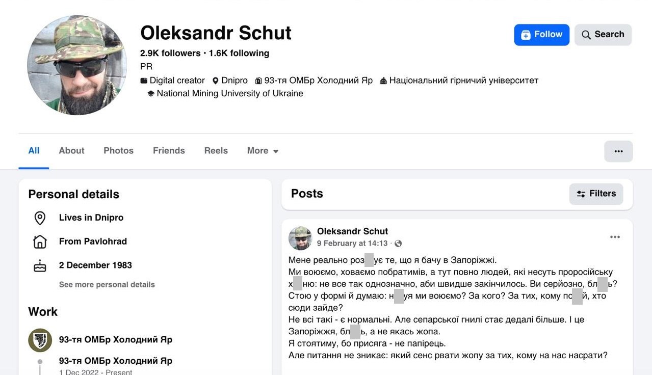 "Меня реально раз******ет то, что я вижу в Запорожье. Мы воюем, хороним братьев, а здесь полно людей, несущих пророссийскую х***ю: не все так однозначно, чтобы скорее закончилось. Вы серьезно, б***ь? Стою в форме и думаю: н***я мы воюем? За кого? За тех, кому п***й, кто сюда войдет? Не все такие — есть нормальные. Но сепарской гнили становится все больше. И это Запорожье, б***ь, а не какая-то жопа. Я буду стоять, потому что присяга — не бумажка. Но вопрос не исчезает: какой смысл рвать жопу за тех, кому нас насрать?" — задается вопросом он.