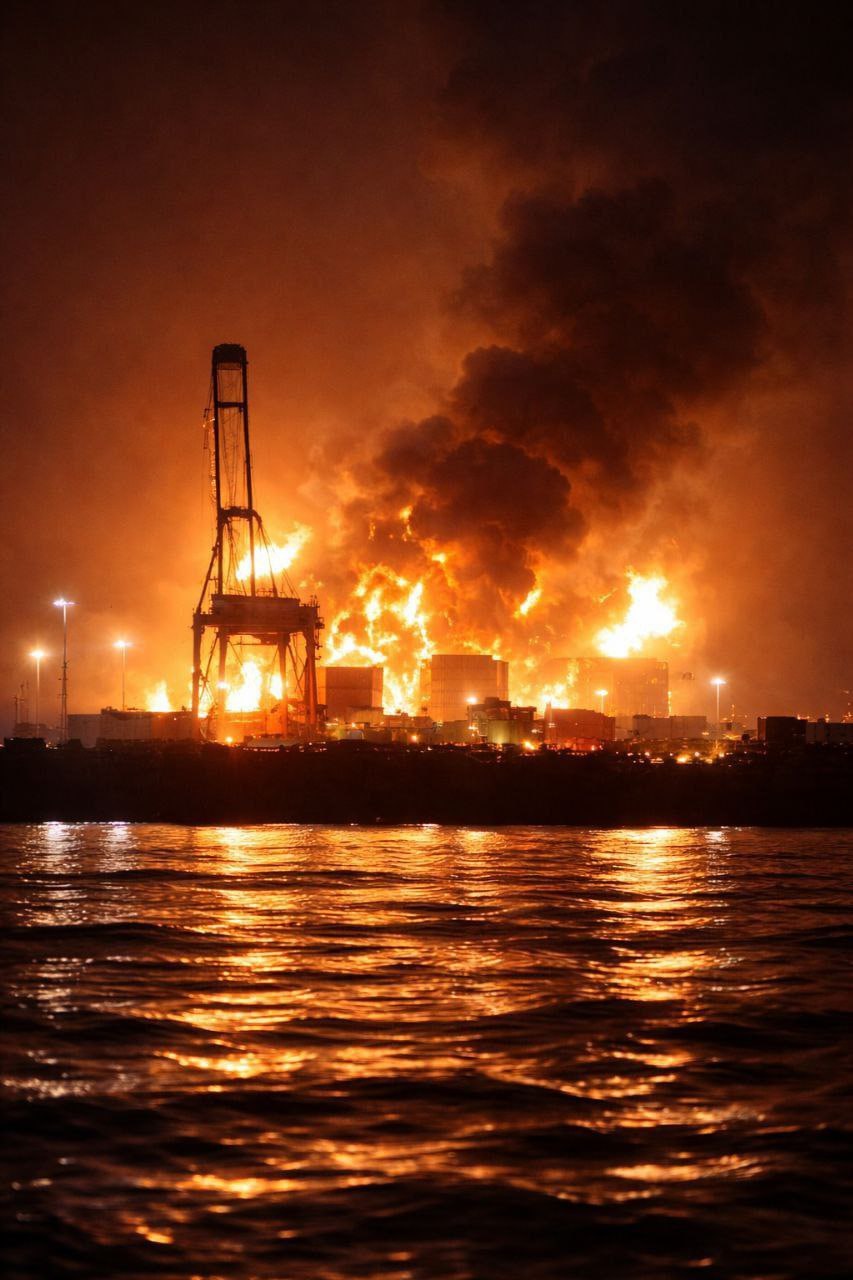 Этим вечером китайские рабочие запечатлели на видео, как две иранские ракеты легко прорываются через огонь систем Patriot и поражают базу флота США в порту Фуджейра в Объединённых Арабских Эмиратах. "Пэтриот" выпустили аж 6 перехватчиков Patriot, но...