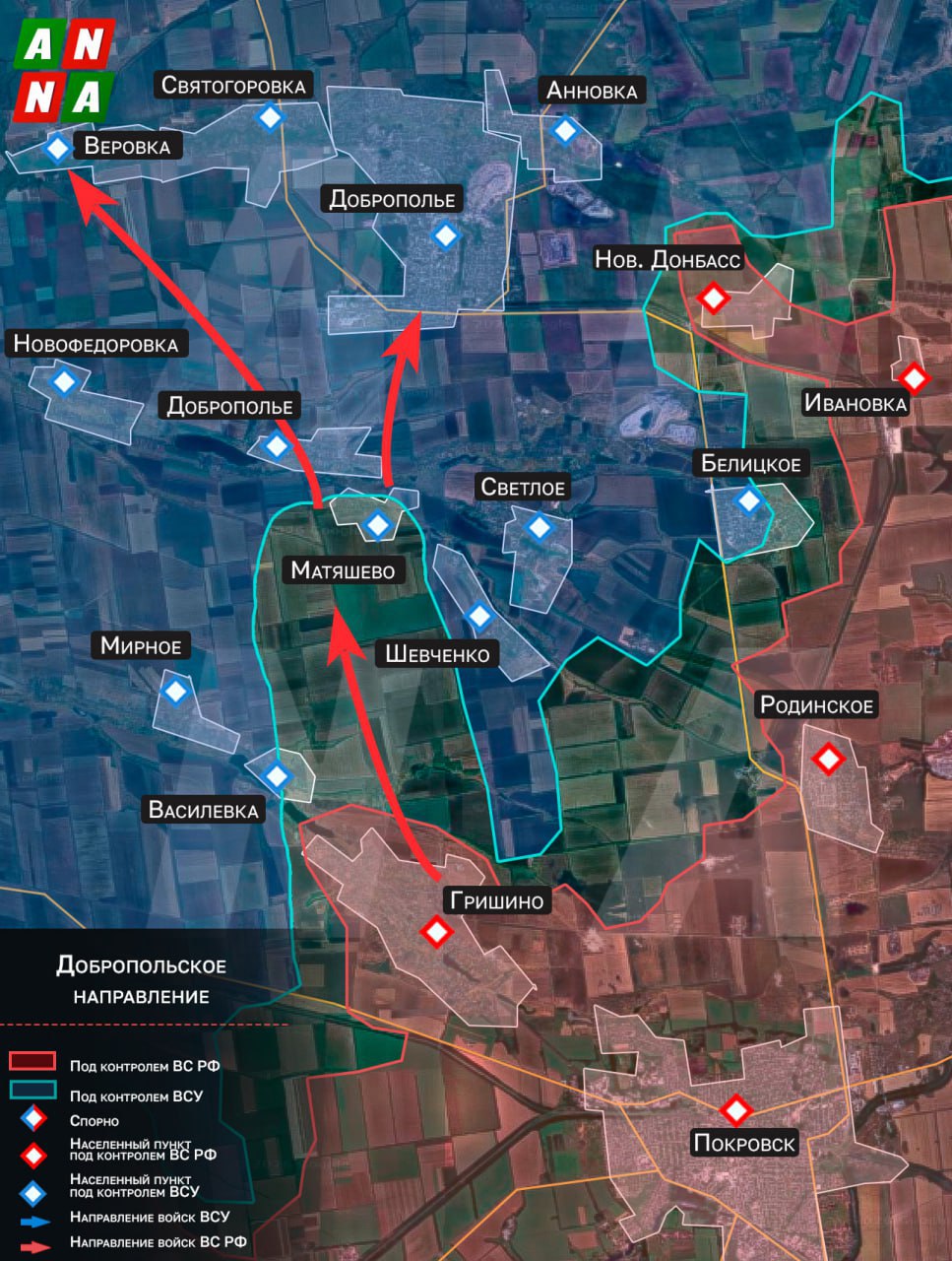 Освобождение армией России Гришино даст опору для продвижения дальше – на северо-запад – в сторону Васильевки и Новоалександровки, заняв которые, бойцы ВС РФ могут по полям снова прорваться к Доброполью с запада.