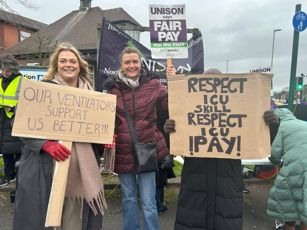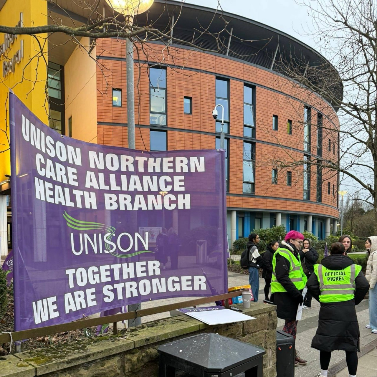 Медики крупнейших больниц Манчестера бастуют из-за того, что им урезали зарплаты за дополнительные смены, а работники патологоанатомических отделений пикетируют у избирательного офиса министра здравоохранения.