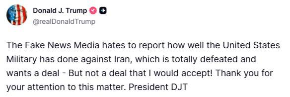 Президент США снова хвастается, что американские военные "успешно справились с Ираном" — но СМИ якобы не хотят об этом писать